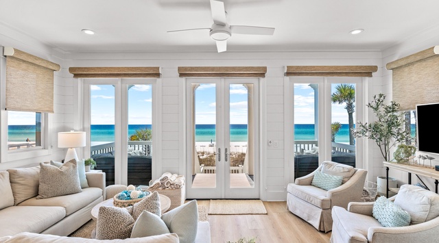 Enchanting views and beach access directly off the back deck make Beachscape a perfect Panama City Beach escape. Easily explore the area with parking for 2 vehicles and 5 complimentary adult bikes. Book this Gulf-front home today.