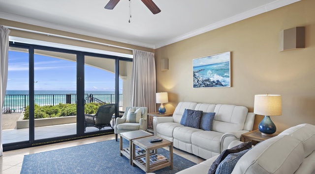 DETAILS: Situated on Destin's pristine white beaches, Villa Coyaba's 2,200 square foot luxury condominiums offer guests a beach haven of rest and relaxation. Featuring 4 bedrooms and 3 bathrooms, this sophisticated unit comfortably accommodates 12 guests and features top of the line furnishings, a Gulf front balcony with an unbeatable view, fully equipped gourmet kitchen and complimentary beach chair service during season. Villa Coyaba is nestled on Scenic Highway 98 and provides guests the convenience of being a short drive away from all of the world-class shopping and dining Destin has to offer.