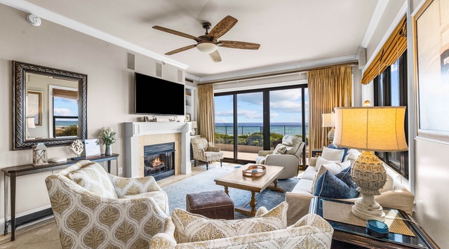 DETAILS: FIRST FLOOR - CORNER UNIT with a fireplace. This fabulous unit has direct access to the beach from the Primary Bedroom and Living Room and is 30 feet above sea level! No need to haul your beach stuff down the elevator and hallway, simply walk out your door. Plus the end units at Villa Coyaba have windows throughout the living room and 2 guest bedrooms that interior units do not, creating an INCREDIBLE PANORAMIC WESTERN GULF VIEW! Each unit now features DePure Air Purifiers that kills viruses and bacteria on surfaces in the home.