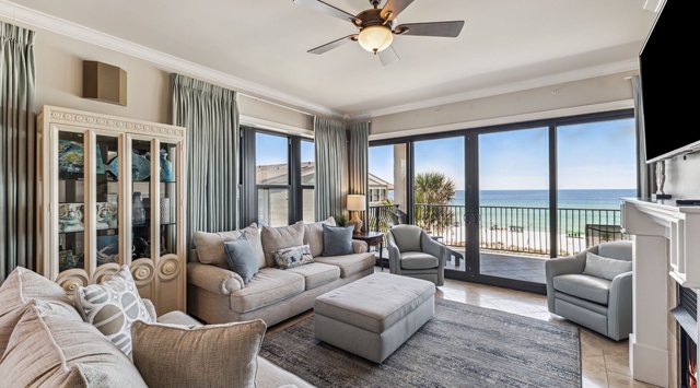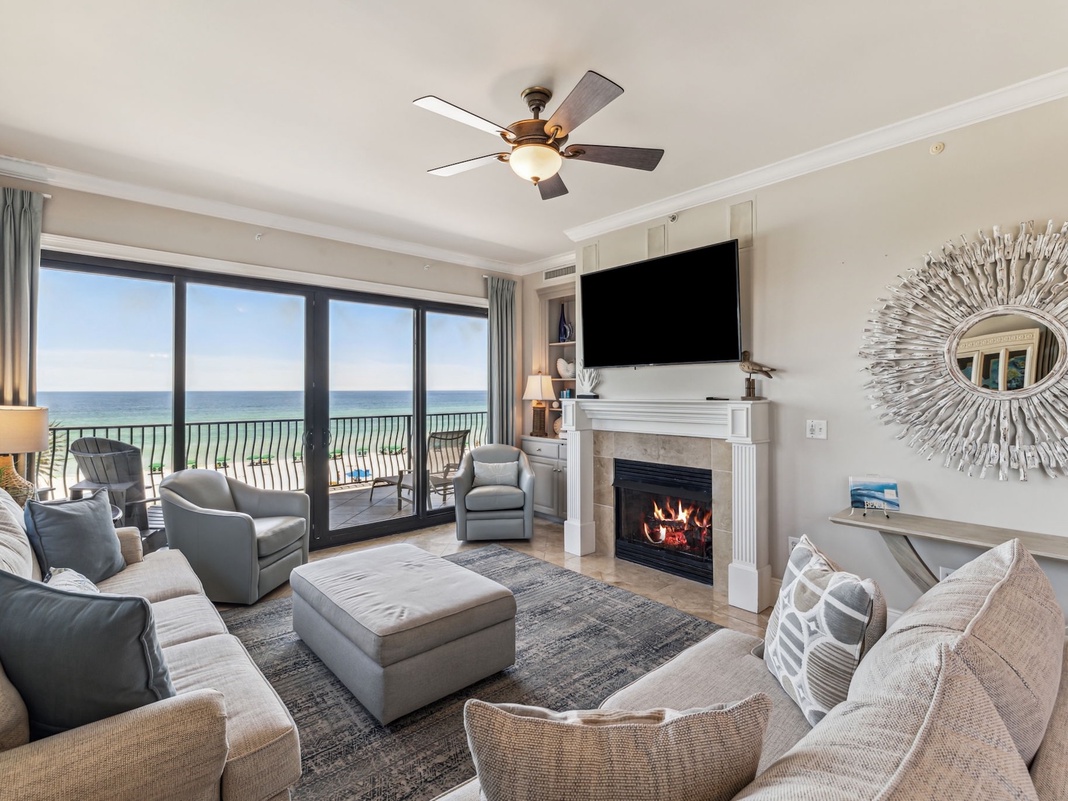 DETAILS: Professionally Decorated, 4 BR/3 BA, 2,200 square ft. 2nd Floor END UNIT with a fireplace. This East end unit at Villa Coyaba has windows throughout the living room and the 2 guest bedrooms that other interior units do not have. AMAZING PANORAMIC GULF VIEWS sitting 40 ft. above the Gulf of Mexico!
