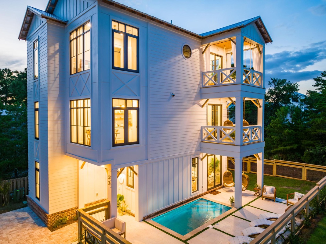 DETAILS: "Beachin on Porpoise" is a 5-bedroom, 5-bathroom Blue Mountain Beach home that sleeps 11. This spacious home features a private pool with plenty of deck space and areas to lounge, a fenced yard, 2 balconies, and a 6-passenger Low-Speed Vehicle—all only minutes from beach access, shops, and restaurants.