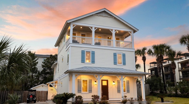DETAILS: This stunning Blue Mountain Beach home features 6 bedrooms, 6.5 bathrooms, a private heated pool, and incredible accommodations for 18 guests.