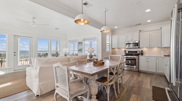 DETAILS: When the beach and sea call, escape to Sunrise Cottage! Set along the Gulf coast, this 3-bedroom, 3-bathroom Blue Mountain Beach home comfortably accommodates 7 guests. Picture days of sandy toes, sun-drenched adventures on the coastal dune lakes, charming boutiques, and local art galleries. Guests will love beginning each day with sweeping Gulf views and taking advantage of the convenient beach access—right off the back deck!