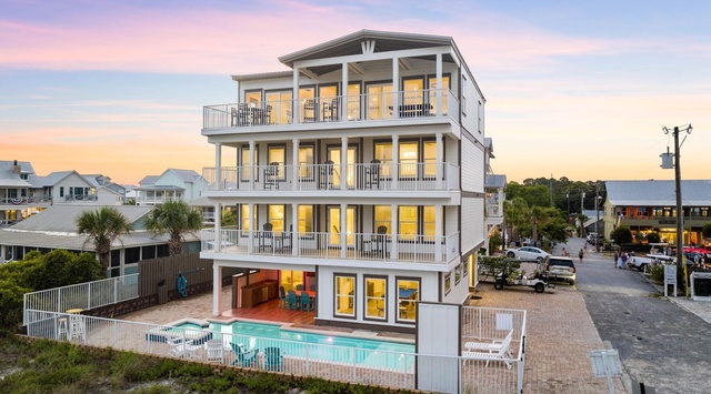 "All Decked Out" offers 3 expansive, gulf-facing decks, an elevator, complimentary daily beach setup with 2 chairs and 1 umbrella, 6 adult beach cruiser bikes, and a custom a 6-seater Low-Speed Vehicle. Entertainment options abound, between the game room on the first floor, a sparkling private pool (which can be heated seasonally), and the close proximity to the best spots in Grayton Beach, including Chiringo, AJ's, and beloved local favorite, The Red Bar.