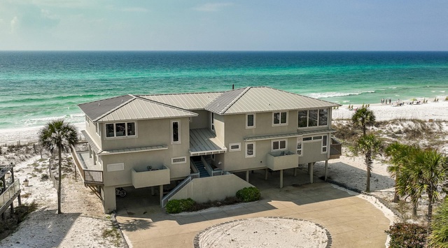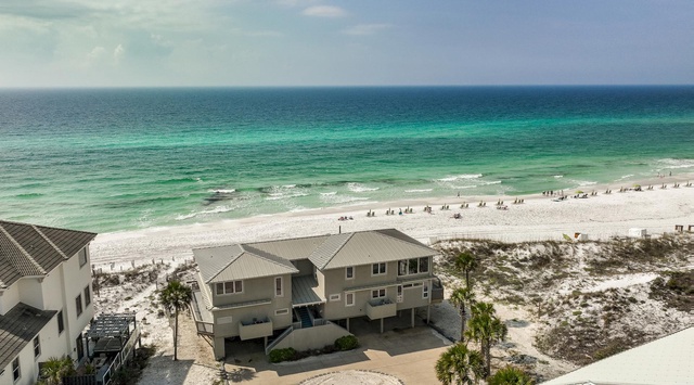 DETAILS: Beach Bungalow is a charming 3-bedroom, 3.5-bathroom townhome that sleeps 10 in Miramar Beach—a lively beach town tucked between Destin and Scenic 30A! This beachfront property offers incredible Gulf views with beach access literally off the back deck. Guests will love the proximity to local shops and restaurants, as well as the outdoor shower, separated deck with loungers, and a covered picnic area.