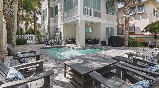 Southern Comfort was a perfect stay for our group. The house is beautiful! So much space...inside and out, beds were comfortable, all kinds of necessities for cooking, and the starter packs with bathroom soaps, dishwashing items and laundry pods were appreciated. The house pool was great, including the community pool. We appreciated the 4 beach chair/2 umbrella set up for us. The location was everything, very close to the beach, walking distance to shops and a few restaurants, very short drive to much more. The private beach was gorgeous and not crowded. The bikes were a fun bonus. We looked at many homes and I'm so glad we chose this one!