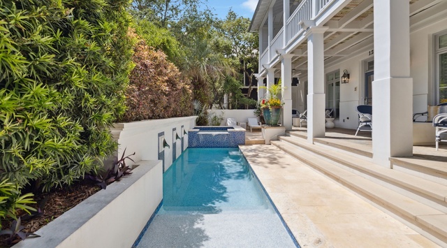 DETAILS: Located south of 30A, Blue Door Cottage is a beautifully renovated 4-bedroom, 4.5-bathroom property in Rosemary Beach that sleeps 12. Steps from private beach access, an adjacent boardwalk leads to the sandy shores, Coquina pool, and the Rosemary Beach shops and eateries. Enjoy the private pool and professionally decorated interiors—boasting new furnishings, light fixtures, refinished hardwood floors, and fresh paint!