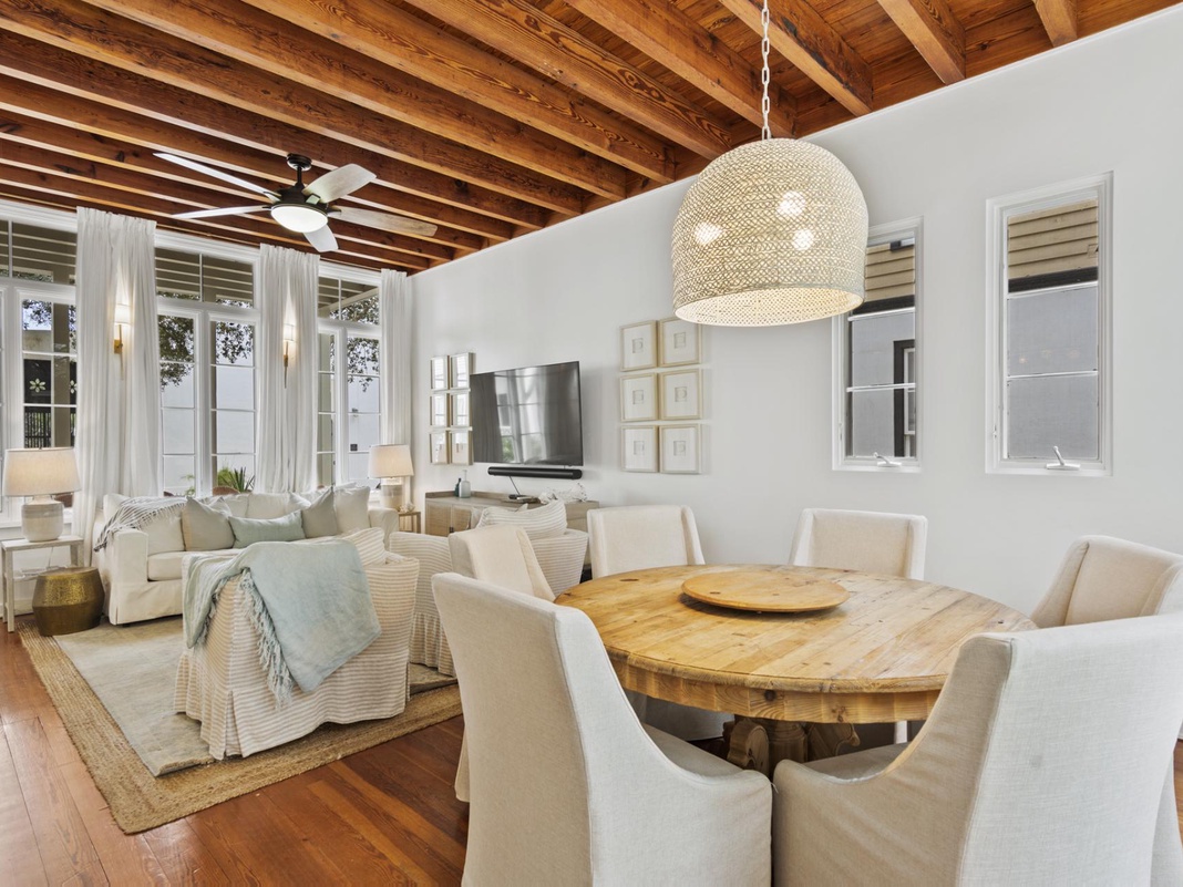DETAILS: Welcome to "The Palms Cottage" This beautiful Rosemary Beach cottage features 2 bedrooms and 2.5 bathrooms with total accommodations for 6. With quintessential 30A charm inside and out, you'll love the home's wood beam ceilings, large areas of natural light and covered porches to relax on.