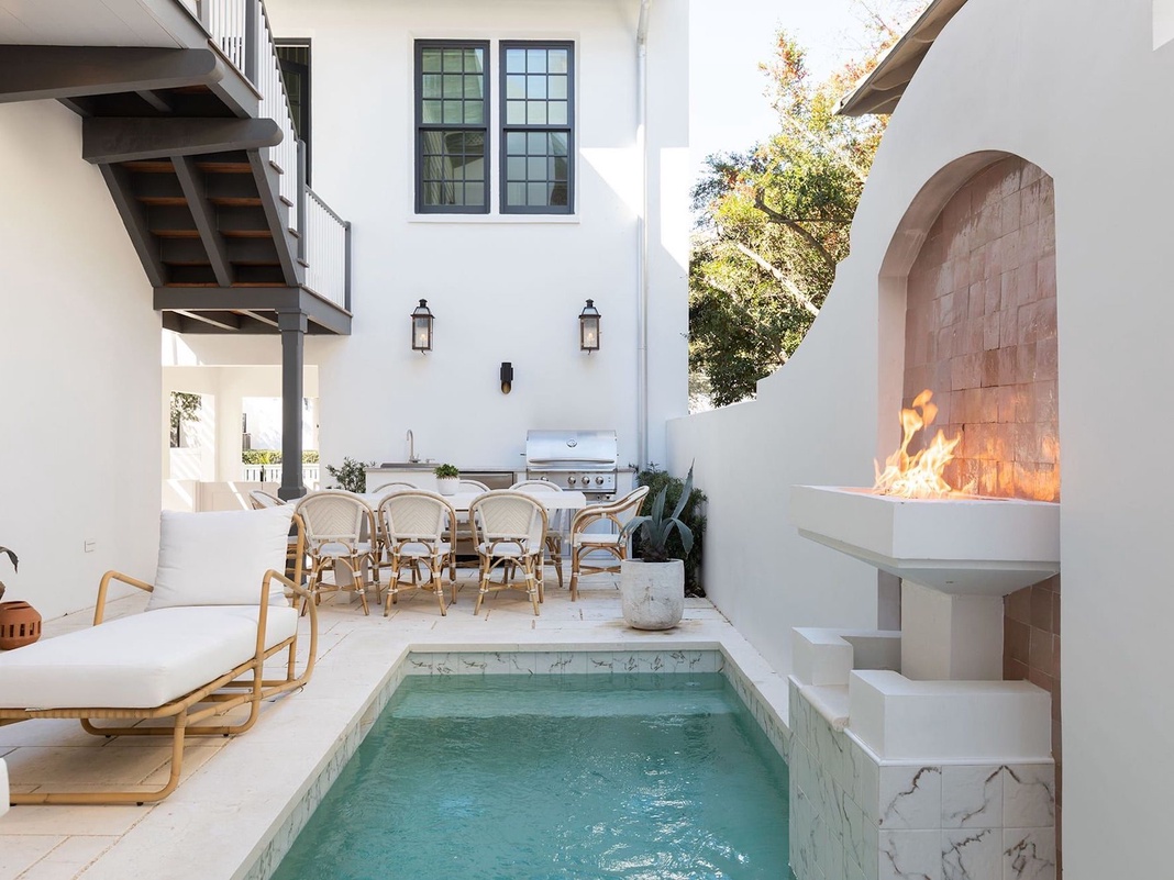 DETAILS: The Salty Rose is a 4-bedroom, 4.5-bathroom Rosemary Beach Main House and Carriage House that sleeps 12. Guests will love the private splash pool with a fire feature, outdoor kitchen, posh finishes, and tranquil interiors. The Salty Rose is close to restaurants, shops, -community pools, and the beach.