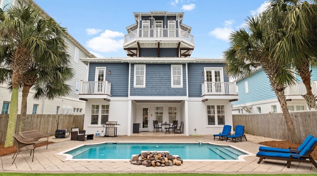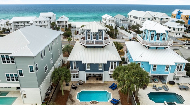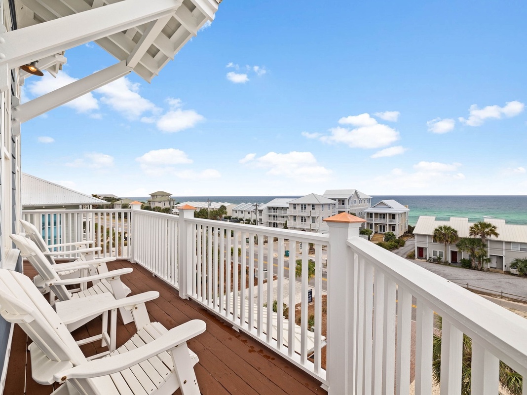 DETAILS: Escape to Casa Bella, a stunning Gulf-view retreat in peaceful Seacrest Beach along Scenic 30A. This spacious 5-bedroom, 3-bathroom with 2 half-baths haven sleeps up to 18 guests, offering the perfect getaway for friends and family. With 3,500 square feet of living space, guests will love the air hockey table, pristine private pool, and wraparound rooftop balcony with 360-degree views of the Gulf—all within steps of beach access, located directly across the street.