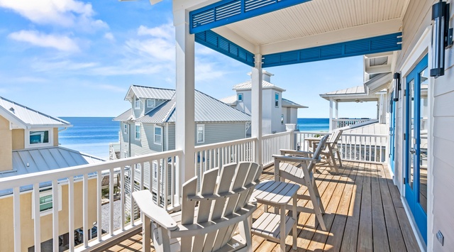 DETAILS: Ocean Pearl is a modern 5-bedroom, 5.5-bathroom coastal home that sleeps 13 in the Seagrove Beach community of Scenic 30A. With more than 3,300 square feet and 2 living areas, this retreat is perfect for large families and friends. Enjoy beautiful views of the Emerald Coast from all 3 floors—with beach access only 50 steps away!