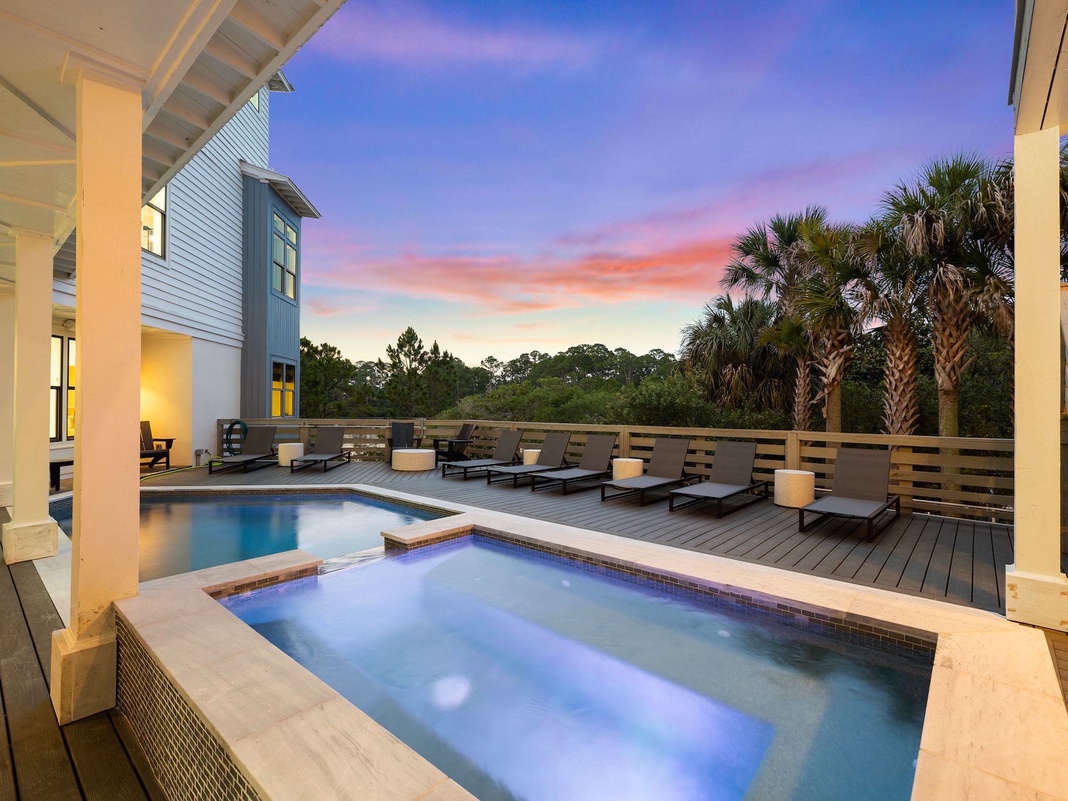 DETAILS: Topping 9,500 square feet with 9 bedrooms, 9 full bathrooms, and 3 half baths, Seaclusion Dunes has enough space to accommodate up to 34 people! Relax on the stunning sugary beaches or explore the local shops and restaurants that Seagrove Beach offers. Guests will love staying steps from the boardwalk and sunning by the private pool!