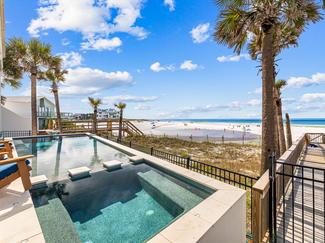 DETAILS: Discover unmatched relaxation at Bella Plage, a Gulf-front, 2-story home boasting 5 bedrooms and 5.5 bathrooms. Sleeping 12 in the quintessential beach town of Seagrove, guests will find a plethora of warm-weather activities to fill the day. Paddleboard across the quiet waters, bike the Timpoochee Trail, or simply stretch out on the sugar-soft sand and bask in the golden sunshine. Guests will adore this HGTV-featured home’s private pool overlooking the beach—with a boardwalk off the back deck!