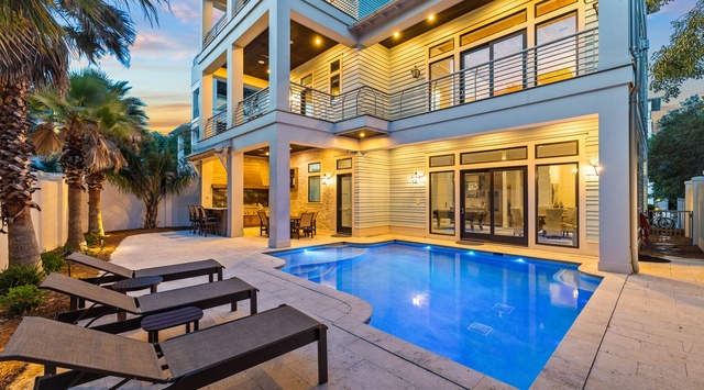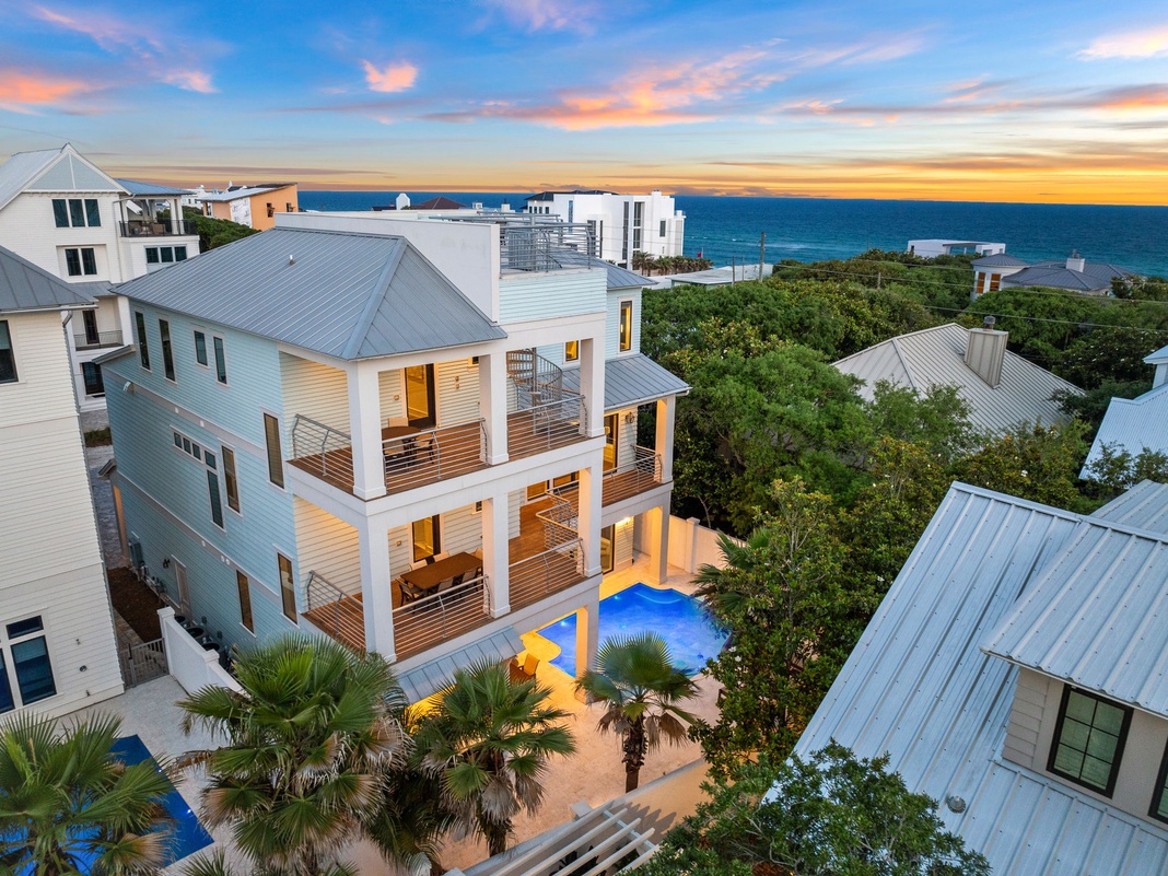 HOME HIGHLIGHTS: - Only 250 steps from the beach - Panoramic Gulf views from the rooftop deck - Private heated pool **Pool heating available October 1 - May 1 for $45 per day** - Complimentary beach setups each morning includes 2 beach chairs and 1 umbrella (Service provided March 1 - October 31) - Complimentary Peloton Bike - an Alaya exclusive amenity - Bike ride from Watercolor & Seaside, FL - Dual gas range stove - Dual refrigerators & dual dishwashers - In-home elevator - Outdoor kitchen and entertaining space - Game room with pool table - Free WiFi - 7 adult bikes - 6-passenger Low-Speed Vehicle - Complete Clean Linen Participant - All linens, including comforter covers, laundered upon every checkout