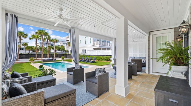 Loved it. Perfect location and perfect for our family of 8. A couple of notes/suggestions- pool furniture! Need some quality chairs and loungers here for guests. What's there does not work. I would have gladly paid an extra $100 in the rental for good pool furniture. Suggestion - access to breaker box. Our family rented 2 golf carts for the week which were plugged in to outside outlets. Well they kept tripping the breakers downstairs. We called 360 blue once but it happened again. Had to plug in to outlets in the hall entrance way. Breaker box is in the garage and I understand limited access but something to consider. Pool Heater- paid for the week and it didn't heat. Called twice and 360 came out both times. However, pool service showed up Thursday and mentioned the valve was not open which limited the heater. Finally after 5 days it heated as it was intended. 360 blue mentioned they would make an adjustment to our payment. Other than that - we would rent again tomorrow. Thanks 360 Blue.