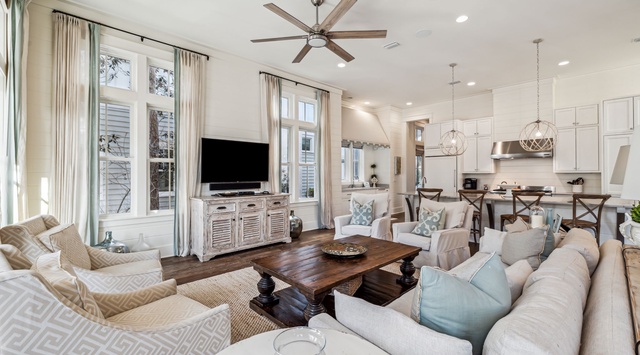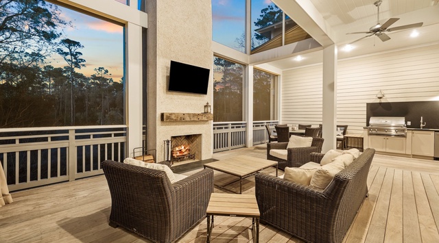 DETAILS: Welcome to 102 Vermillion Way, a beautiful 4-bedroom, 4.5-bathroom WaterColor home sleeping 12 guests. Paddle across sparkling Western Lake or take a leisurely bike ride to the sugar-white sand beach. Guests enjoy all the amenities of this resort-style community, including tennis courts, community pools, and the famous WaterColor Beach Club! Designed for coastal living, spend quiet evenings around the outdoor fireplace and grilling in the Summer kitchen.