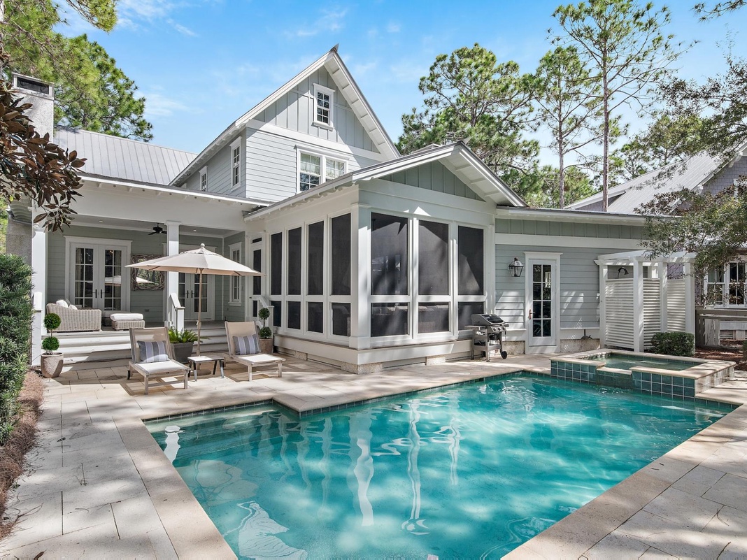 DETAILS: Perched upon one of the largest lots in WaterColor, 132 Pine Needle Way is a 4-bedroom, 4.5-bathroom that sleeps up to 12 guests. Delight in access to the expanded WaterColor Beach Club, multiple community pools, and gorgeous scenic views throughout the area. Guests will love spending tranquil days in the enclosed outdoor living space or lounging by the pool, followed by relaxing evenings in the sitting spa.