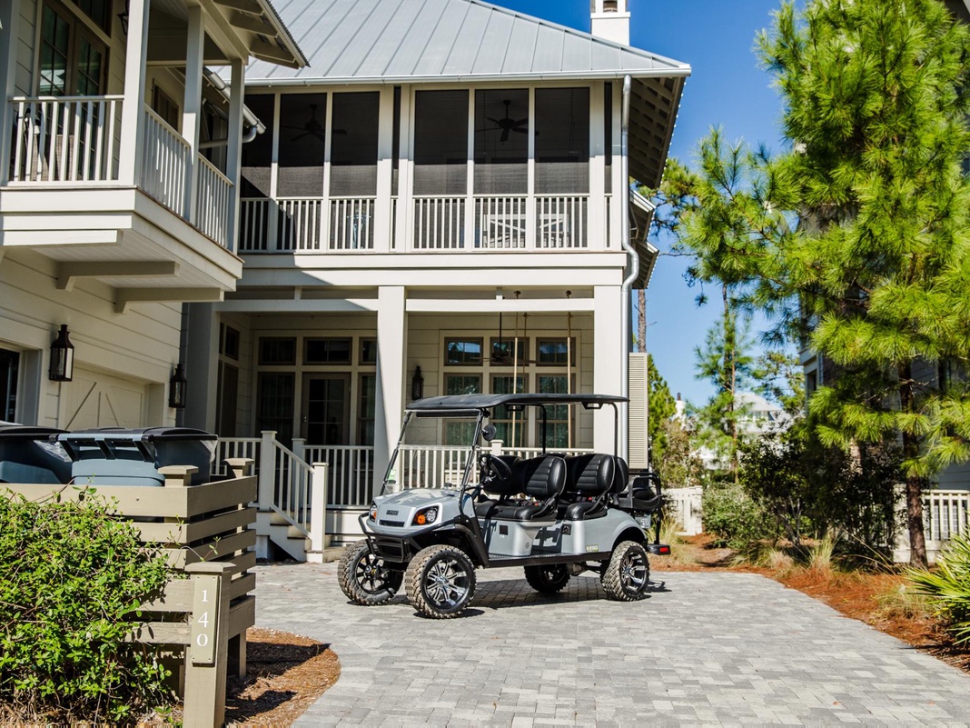 Indulge in a relaxing WaterColor vacation at 140 Flatwood Street. Parking for 4 vehicles and a complimentary 6-seater Low-Speed Vehicle makes exploring the area simple. For beach access, choose from the private beach club in main WaterColor, the public Van Ness Butler access between WaterColor and Seaside, or the public Santa Clara beach access in Seagrove.