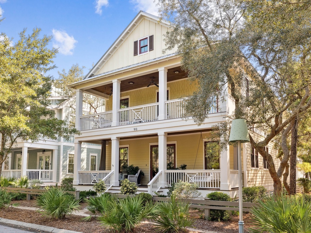 DETAILS: 90 Scrub Oak Circle is an impeccable home with Watercolor's Frog Pool only one block away. This gorgeous 4100 sq home has 5 Bedrooms and 5.5 baths including a beautifully decorated Carriage House. Enjoy the open concept living area connecting the dining room, living room, kitchen and incredible screened porch! The first guest bedroom is found on the ground floor. It includes a king bed and adjoining bathroom featuring a single vanity and shower. In addition, this floor includes a convenient office for those who may want to work remotely!