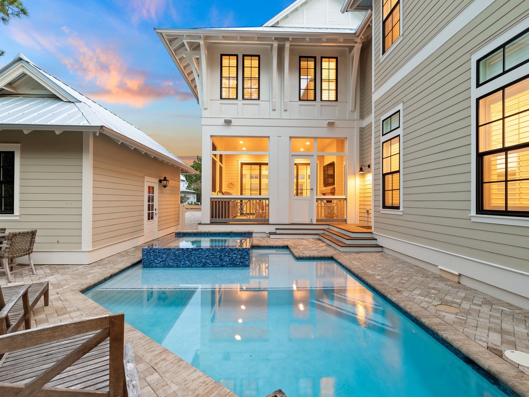 DETAILS: Enchanting days are ahead at Big View II, a WaterColor home with 5 bedrooms and 5.5 bathrooms that comfortably sleeps 10. Take advantage of access to WaterColor’s Beach Club, Boathouse, walking trails, and stunning views of the Gulf of Mexico—all a short walk or bike ride away. Guests are sure to adore this property’s sunny lanai and private pool in the secluded backyard.