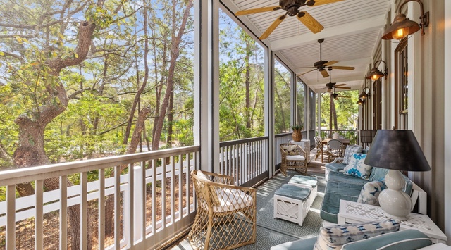 DETAILS: Mature wooded surroundings enhance the generous corner lot of this classic WaterColor home. Ideally located in Watercolor with easy access to Seaside, this home also has a new pool/spa; first-floor master; second-floor additional living room; 4 bedrooms with en-suite baths in the main house, and one of the most generously sized carriage houses in WC. The kitchen accommodates several creative cooks at once, and the home offers multiple porches, including an upper screened porch complete with ping pong table!