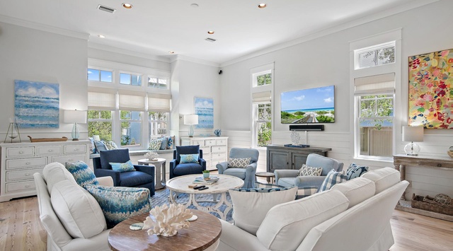 When it's time to hit the beach, guests can take a short walk with their beach bag and be on the sugar white sand in minutes. The sparkling emerald waters and peaceful vistas promise to lure you into a vacation state of mind. Guests in this home can enjoy access to the WaterColor Beach Club, which offers a perfect place to splash in the pools and float along the lazy river. This home is also equipped with 5 custom 360 Blue beach cruiser bikes, which are the perfect way to explore the incredible local dining, shopping, and entertainment options in WaterColor and our surrounding coastal towns.