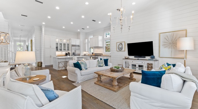 Peaceful Pause is a 4-bedroom, 4.5-bathroom WaterColor home. Guests will enjoy the proximity to Camp WaterColor's newly expanded pools and the lush, coastal aesthetic of the home.