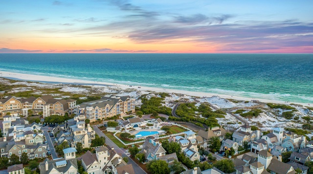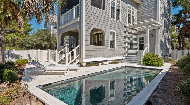 DETAILS: This 5-bedroom, 5-bathroom home at 148 Coopersmith Lane in WaterSound sleeps 12 and has all the amenities guests crave. A large private pool, Gulf views, sitting areas on each level of the home, a screened porch, a golf cart, and even a separate workspace for those moments when professional and personal time mix.