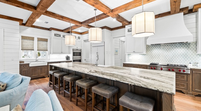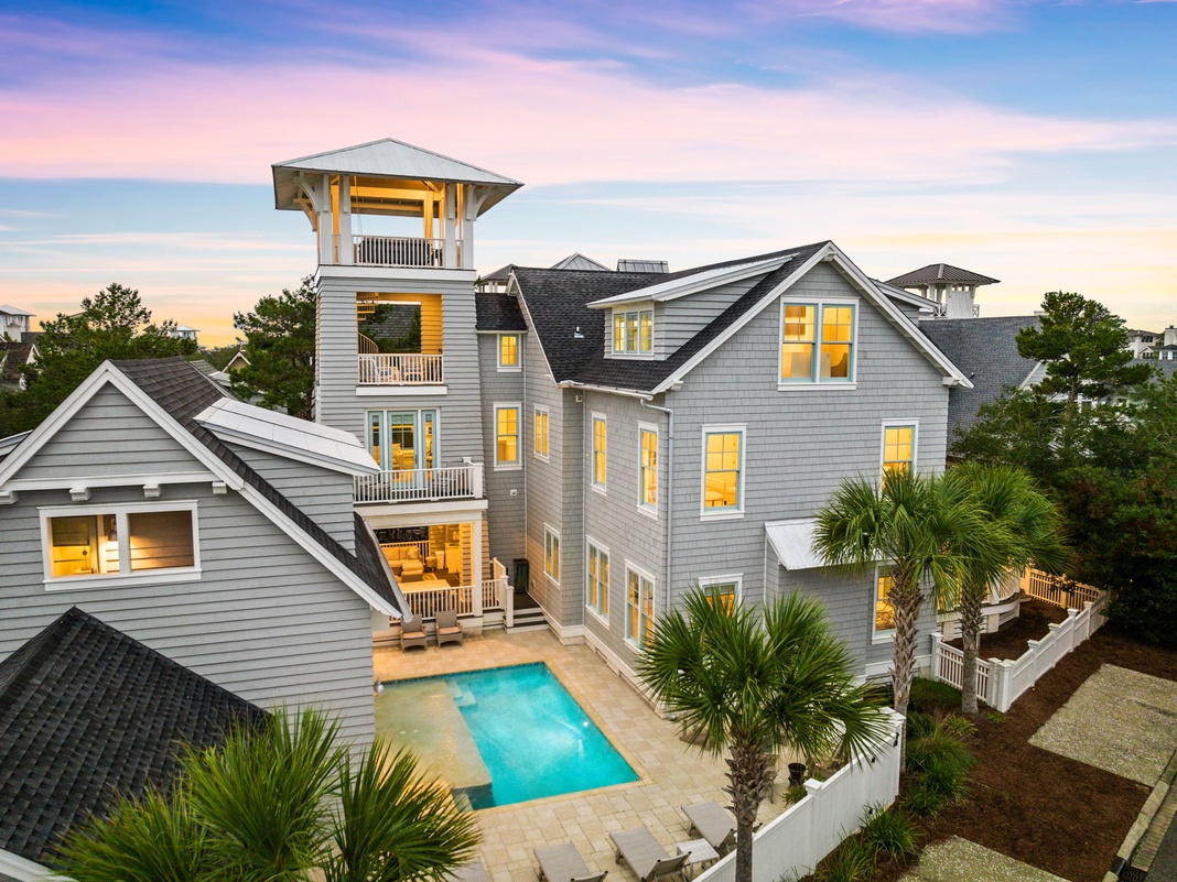 DETAILS: Nestled on the Emerald Coast, 41 N. Founders Lane is a stunning 6-bedroom, 6.5-bathroom home that sleeps 14 in WaterSound. Known for its winding boardwalks and rolling dunes, this picturesque community near the Gulf of Mexico offers multiple pools, and a puttering park. Guests will fall in love with the indulgent private pool and sweeping views from the 4-story lookout tower.