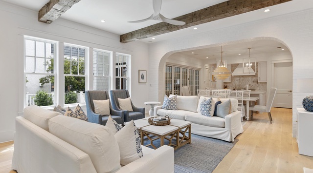 DETAILS: Premium location meets Coastal New England design! This gorgeous, newly constructed 3-story, 6-bedroom, 6-bath WaterSound getaway has it all: a private pool, golf cart, and spectacular outdoor living spaces—and it’s just a short walk to the quartz-sand beaches of the Emerald Coast. It even has Gulf views!
