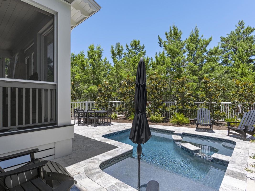 DETAILS: 77 Shore Bridge is a comfortable 5-bedroom, 5-bathroom WaterSound home with a Carriage House that sleeps 12. Guests will love the private pool and sitting spa, screened porches, 6-seater golf cart, and the tranquil beauty of WaterSound.