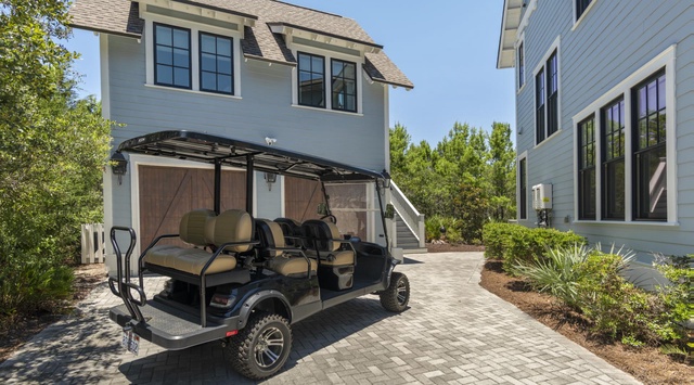 With the 6-passenger golf cart and 5 included adult bikes, it is easy and fun to explore WaterSound, go to the beach, or head over to The Big Chill for dinner or a concert. Book 77 Shore Bridge for your next beach vacation.