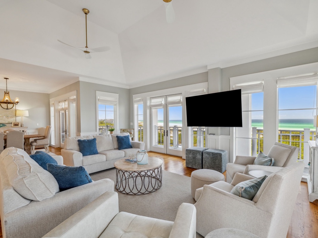 DETAILS: Sweeping Gulf views and white-sand beaches await at A Winterpast by the Sea. Sleeping up to 10 guests, with 4 bedrooms and 4.5 bathrooms, this penthouse WaterSound condo is the perfect getaway for families and groups. Spend sun-kissed days taking advantage of the Puttering Park, winding boardwalks, community pools, and quick beach access. Restaurants, sweet treats, and shopping are a short walk away at The Big Chill. Whether coming for relaxation or active outdoor fun, guests will love starting and ending each day savoring the stunning view from the balcony.