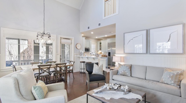 DETAILS: This quintessential Watersound beach cottage features professionally decorated interiors, vaulted ceilings, 2 bedrooms, 3 bathrooms, and beautiful accommodations for guests.