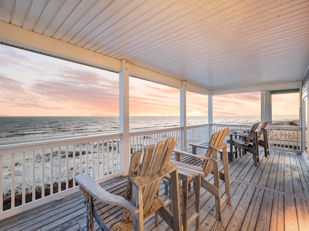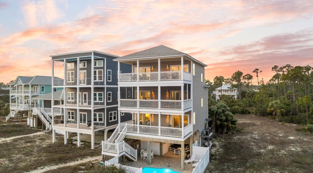 DETAILS: Adagio Beach is a beautiful Gulf-front home that sleeps 14 with 6 bedrooms and 5.5 bathrooms in stunning Cape San Blas. This pet-friendly home provides resort-style amenities, including 3 beachfront decks, a private heated pool, and more than 2,700 square feet of living space. Beach access is directly off the back porch overlooking the Gulf on Indian Pass!
