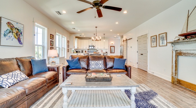 DETAILS: A short walk from a quiet beach in Cape San Blas lies Turtle Time, a family-friendly retreat tucked within the gated, Gulf-side Jubilation community. Guests enjoy access to the neighborhood pool, clubhouse, and boardwalk. Ideal for groups, this gorgeous home sleeps up to 10 guests and has 4 bedrooms, 3.5 bathrooms, multiple decks, and 2 living areas!