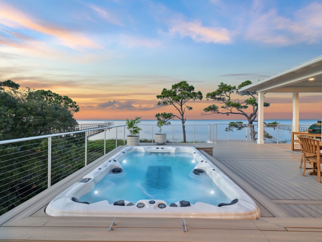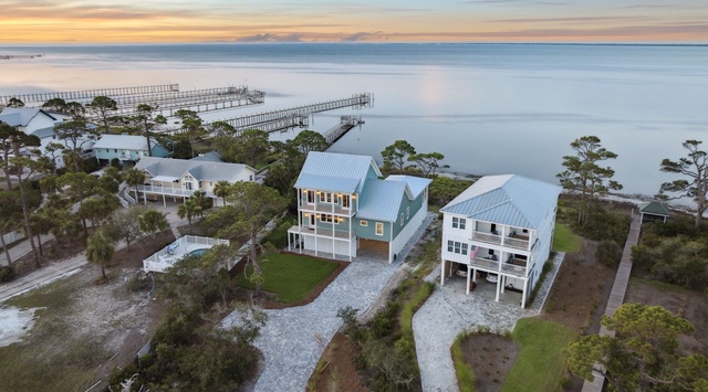 DETAILS: Discover King's Bay, a luxurious North Cape San Blas bayfront home nestled along the serene Forgotten Coast—only steps from the beach! With 2,930 square feet of pet-friendly living space, this 5-bedroom, 6.5-bathroom retreat comfortably sleeps 12. Enjoy stunning Gulf views, a private swim spa, and access to the community pool, dock, and beach. It's the perfect destination for coastal adventure!