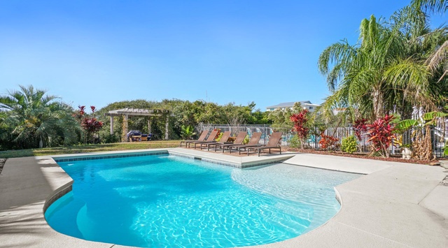 DETAILS: Time for a fabulous retreat at Ooh La La! Tucked along the Forgotten Coast, this North Cape San Blas home generously accommodates up to 14 guests with 5 bedrooms and 4 bathrooms. Recline beside the sparkling private pool or savor the coastal warmth from the shady, screened-in porches, with a firepit, sitting spa, and beachfront access. Guests looking to enjoy the blissful Florida weather are sure to fall in love.