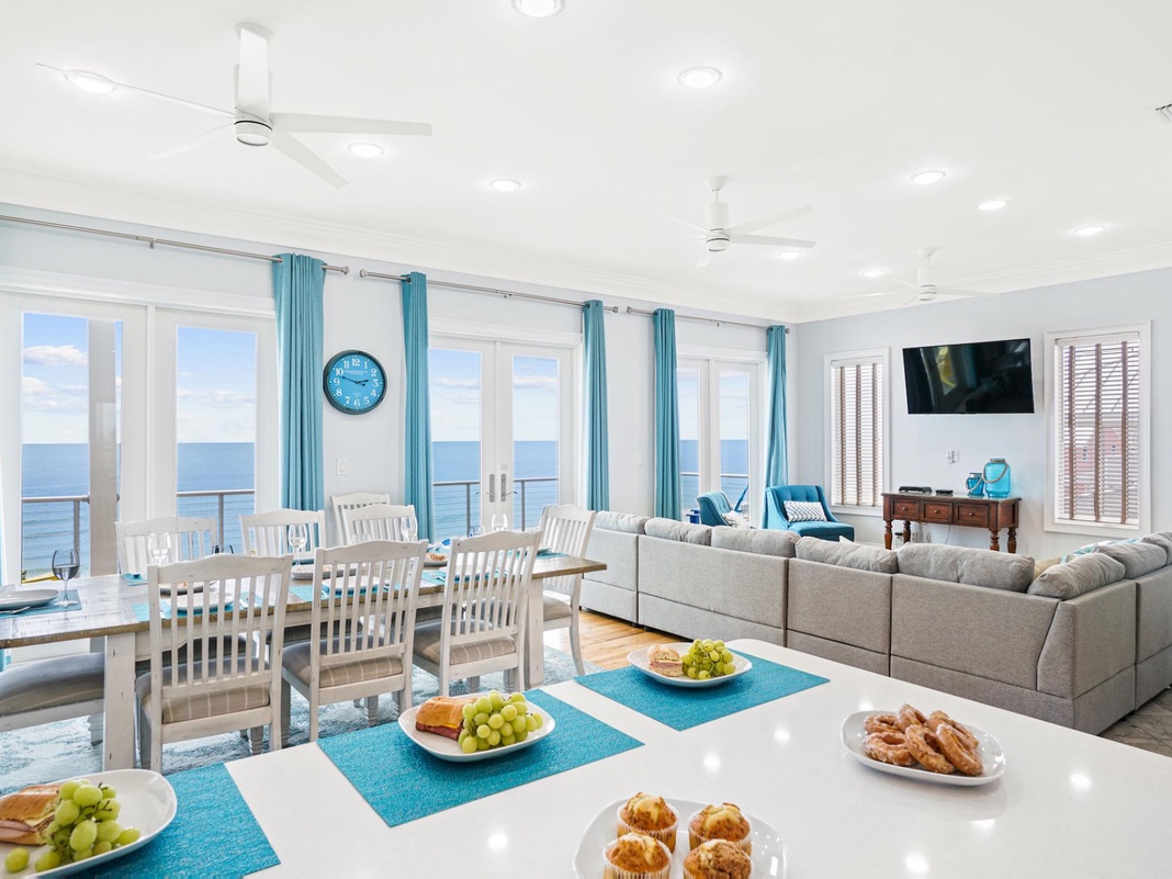 table with space for everyone and a sizeable wrap-around chaise sofa enjoy gorgeous Gulf