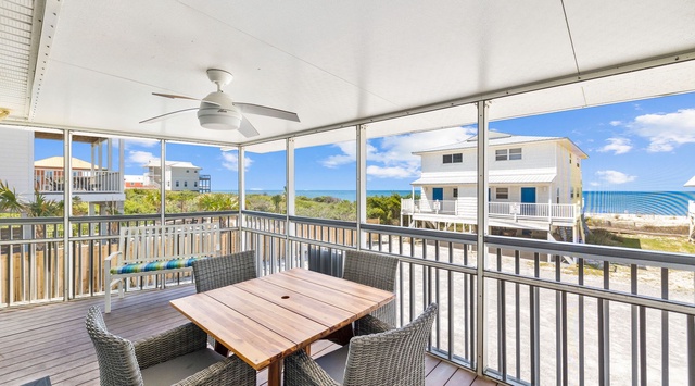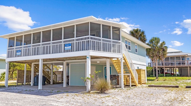Details: Relax is an adorable, Gulf-view, 2-bedroom, 2-bathroom duplex home in Cape San Blas that sleeps 6. Guests will love the large, screened-in porch with Emerald water views, the classic old-Florida vibe, and the quiet Cape location.