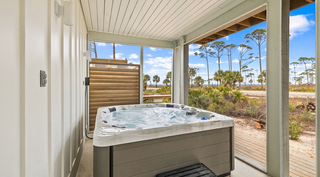 DETAILS: Shalom Y'all is a stunning 4-bedroom, 5.5-bathroom coastal home in North Cape San Blas that sleeps 10 comfortably. Located next to St. Joseph State Park, this property is surrounded by serene natural beauty and is a short walk from the white sand beaches of the Gulf and St Joseph Bay. This pet-friendly home has great amenities, too—a private hot tub, access to the community pool, deeded beach access, and more!