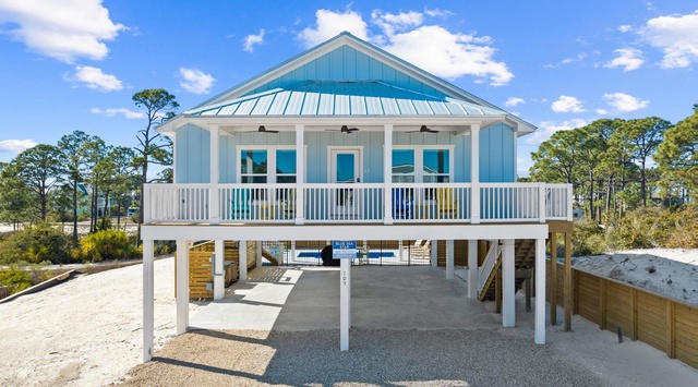 DETAILS: Nestled in blissful Cape San Blas with Gulf views, Blue Sea Star is single-story home with 3 bedrooms and 2 bathrooms that comfortably sleeps up to 12 guests. Revel in the quiet seclusion and natural beauty of The Forgotten Coast and take advantage of family-friendly outdoor activities, like biking, kayaking, and fishing. Whether strolling the community boardwalk, exploring the nearby beach, or swimming in the private pool, guests looking for warm-weather fun will love this charming home.