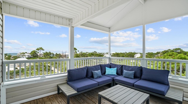 The third floor is all about fun! Guests can end a long day in the sun with a fun game of air hockey or recline on the wrap-around couch on the veranda and take in the Gulf views. Guests can nap on the game room’s twin day bed with twin trundle or opt to stay in the bunk room, which has a twin-over-full bunk bed.