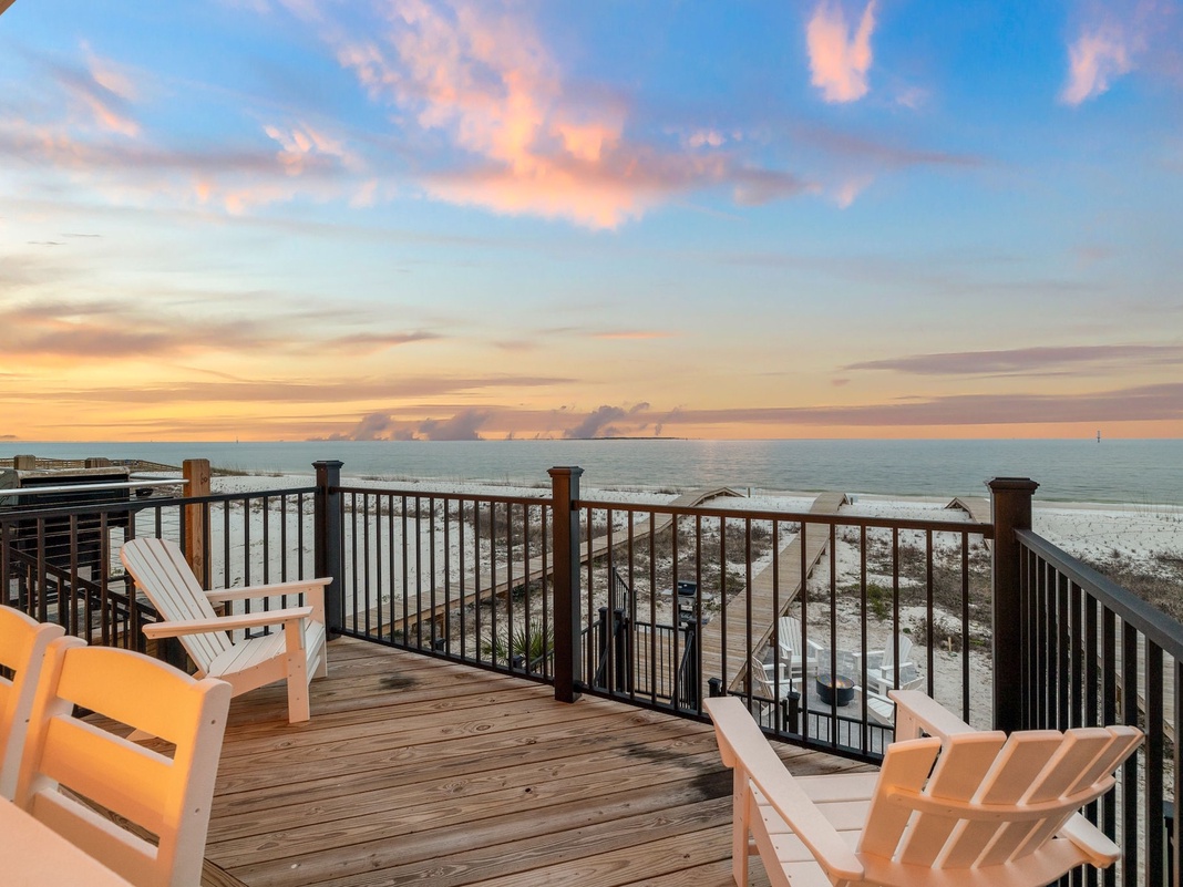 Gleaming hardwood floors, contemporary finishes, and enchanting glimpses of the Gulf create a serene beach setting inside this 3-story beachfront home. Spend relaxed mornings flipping pancakes or blending smoothies in the lovely open-concept kitchen featuring an expansive 4-seat breakfast bar. For dining, there’s a table with 4 chairs and bench seating. Relax on the soft sectional in the seamlessly connected living space as the 75” Smart TV and Sonos soundbar offer an immersive entertainment experience. Slide open the glass doors to discover the true gem of the home—the oceanfront pool and effortless beach access! Go for a swim or head down the private boardwalk to stroll along the shoreline, search for seashells, and play in the surf.