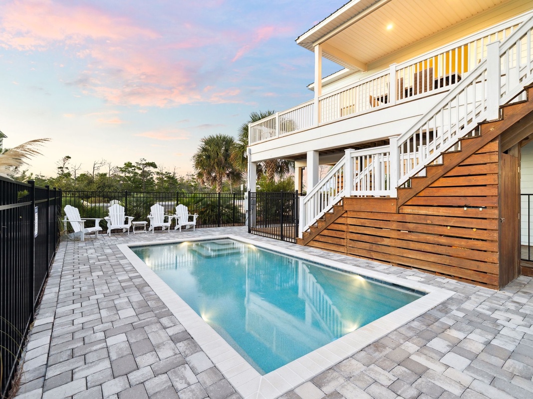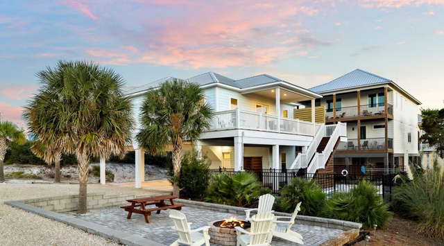DETAILS: Leisurely beach days await at the aptly named Down the Shore. This charming 4-bedroom, 3-bathroom home sleeps up to 10 guests in North Cape San Blas—less than 500 feet from dedicated beach access! Savor refreshing swims in the private pool, casual nights roasting s’mores around the firepit, or alfresco meals on the spacious balcony, with views of the Gulf in the distance. The secluded beauty of the Forgotten Coast offers an unmatched escape, featuring sugary white sand beaches, sparkling turquoise waters, abundant wildlife, and a laid-back lifestyle perfect for scenic walks, paddleboarding, and horseback rides on the beach.
